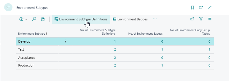 With the Environment Subtypes feature you can define and set up configurations for the Environment Subtypes: